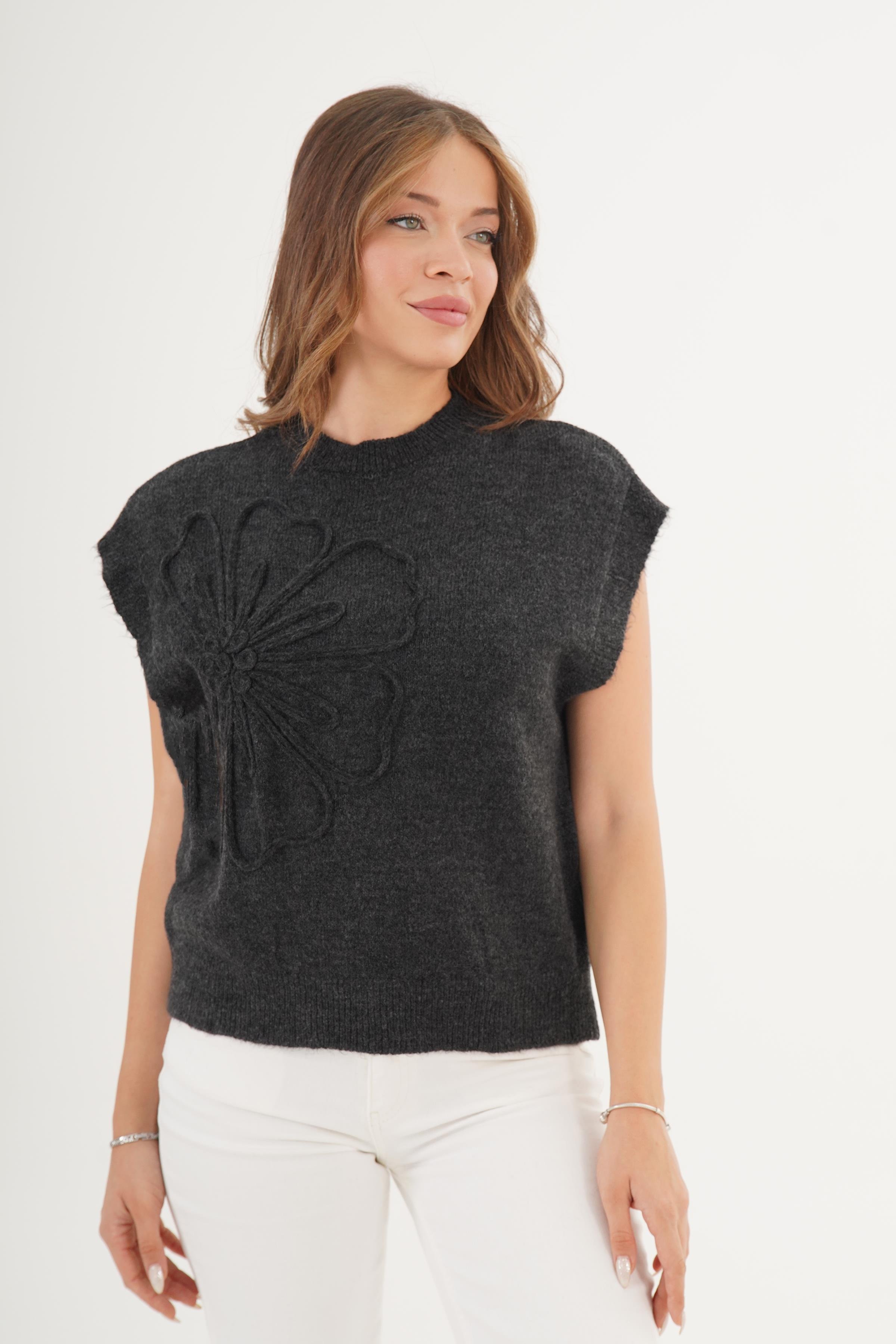 Papatya Desenli Toptan Antrasit Triko Süveter (6643-ANTRASIT)