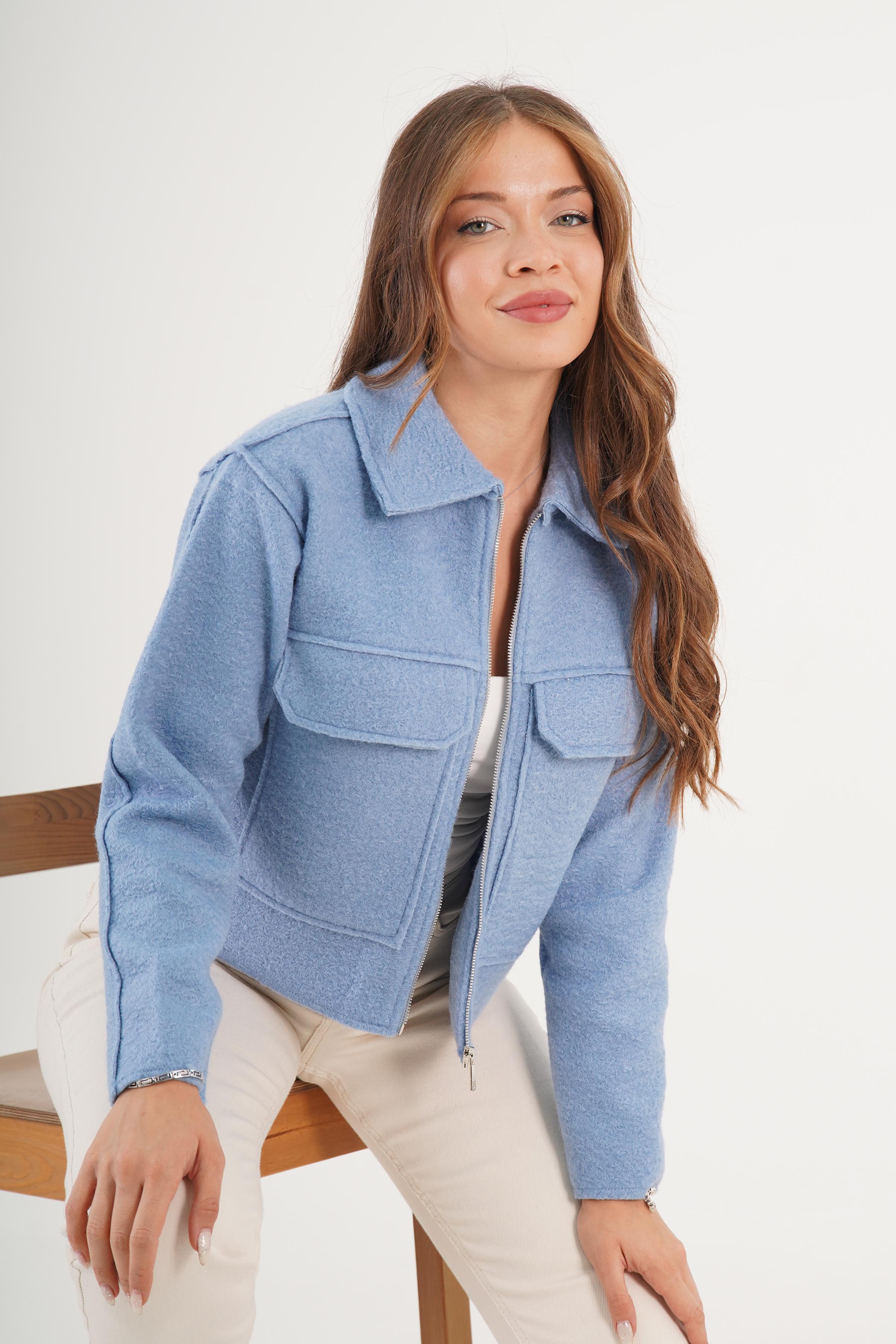 Buklet Desenli Toptan Mavi Ceket (4857-MAVİ)