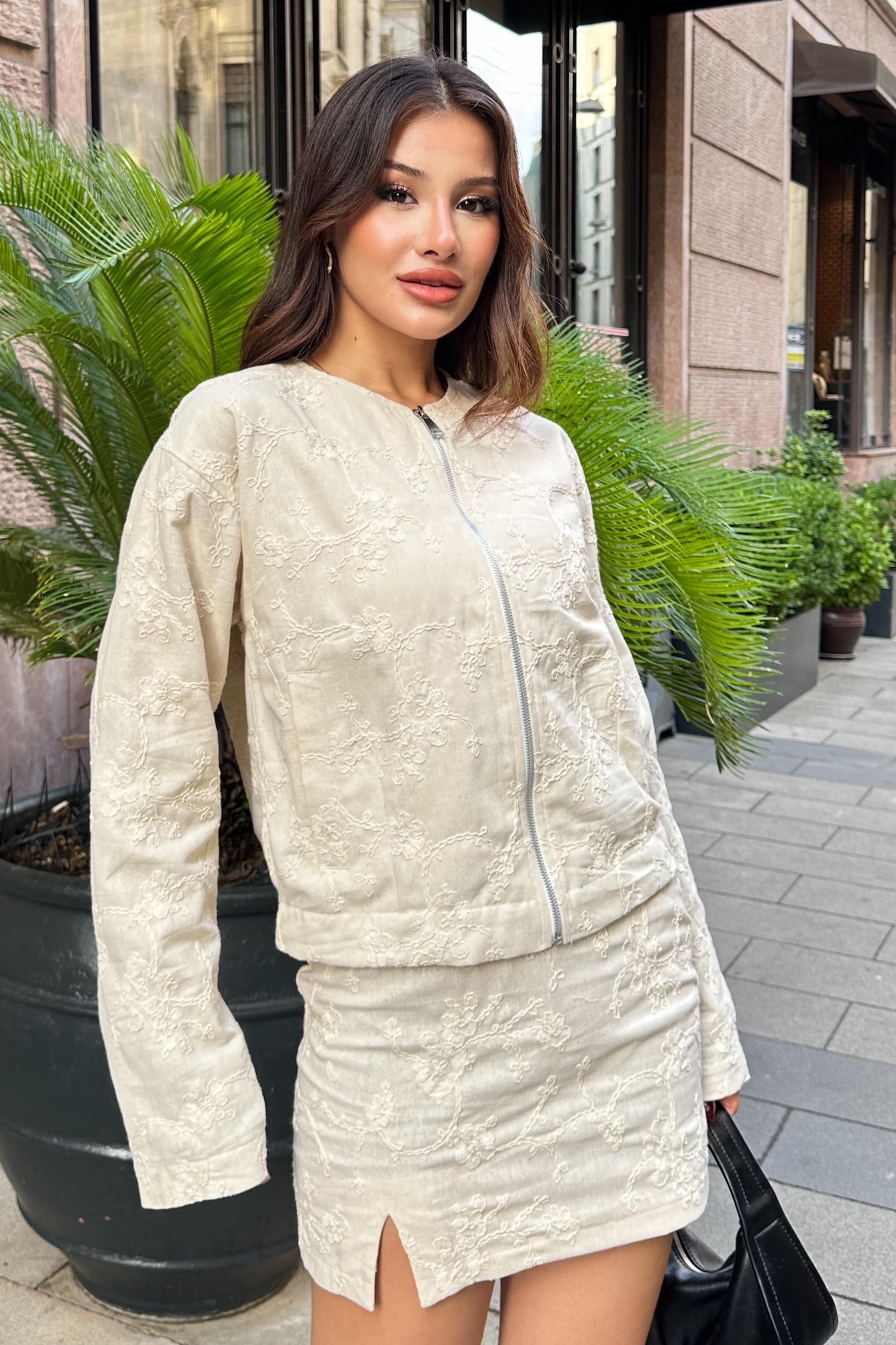 Şıklık ve zarafeti bir araya getiren çiçek nakış işlemeli toptan ceket, detaylı işçiliği ve modern tasarımıyla mağazaların koleksiyonuna değer katar. Özel nakış işlemeleriyle zenginleştirilen bu model, kaliteli kumaş yapısı sayesinde hem rahat hem de şık bir kullanım sunar.