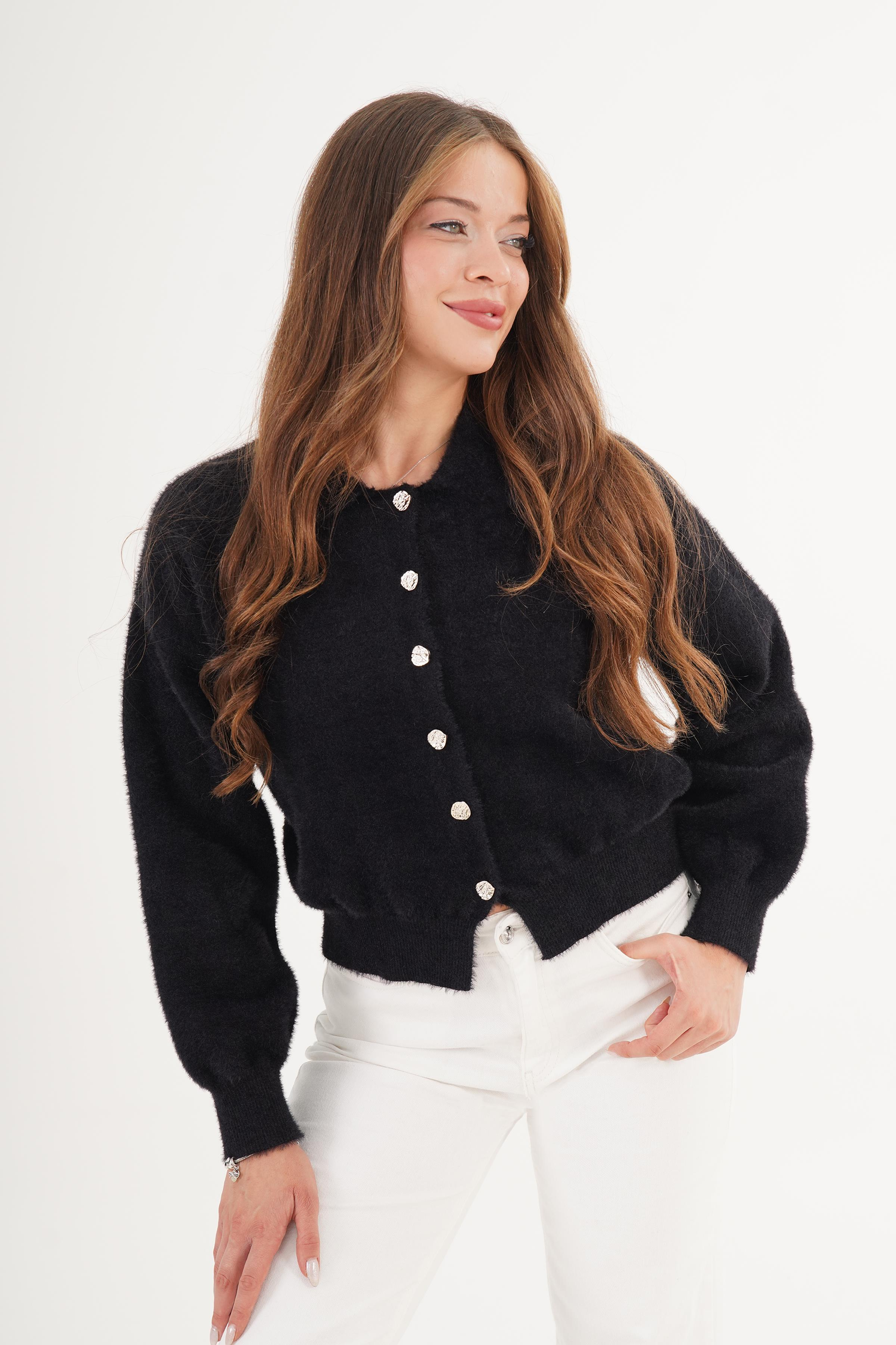 Önü Düğmeli Yumoş Siyah Toptan Hırka