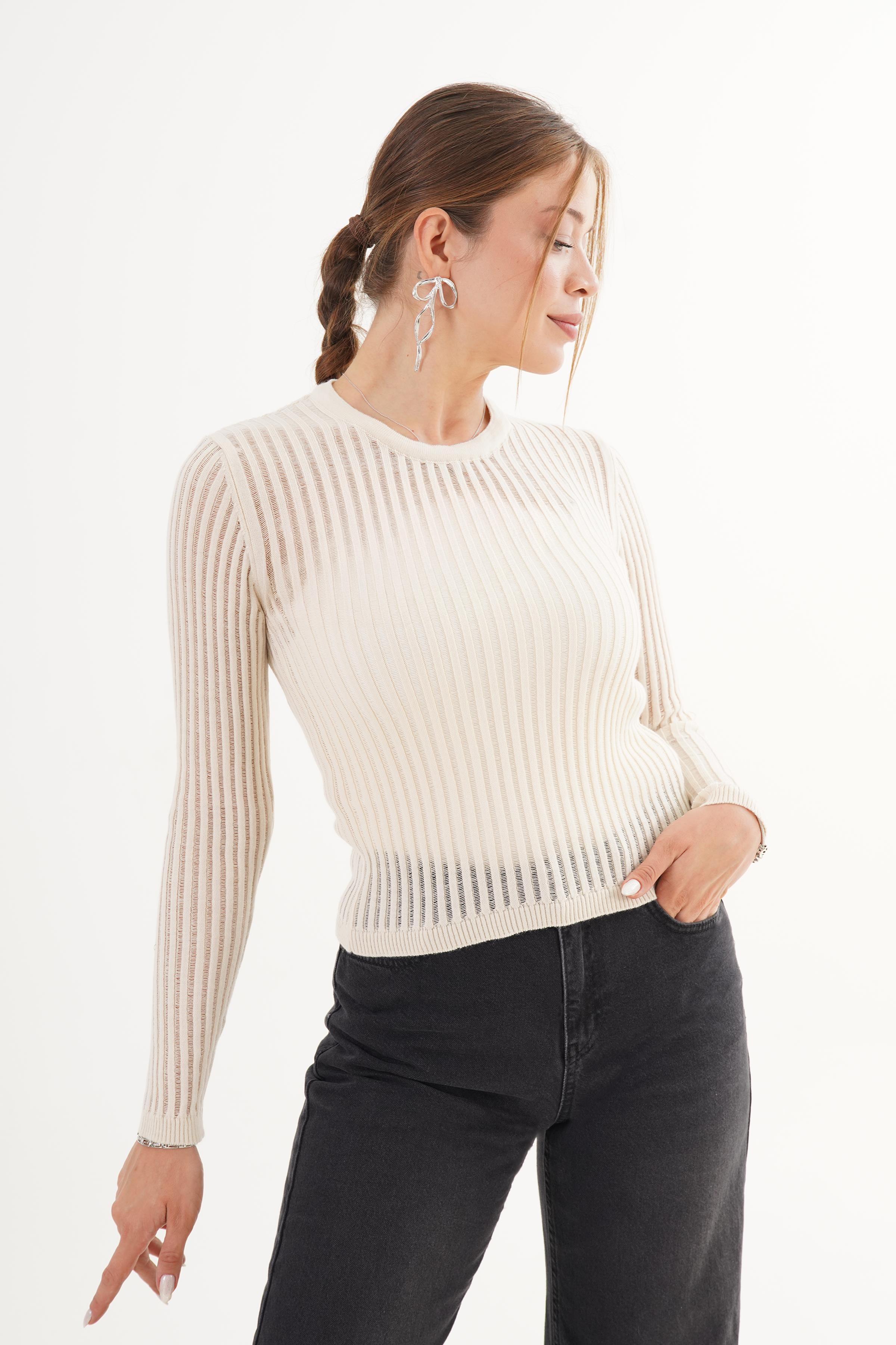 Transparan Bisiklet Yaka Taş Triko Body (6564-TAŞ)